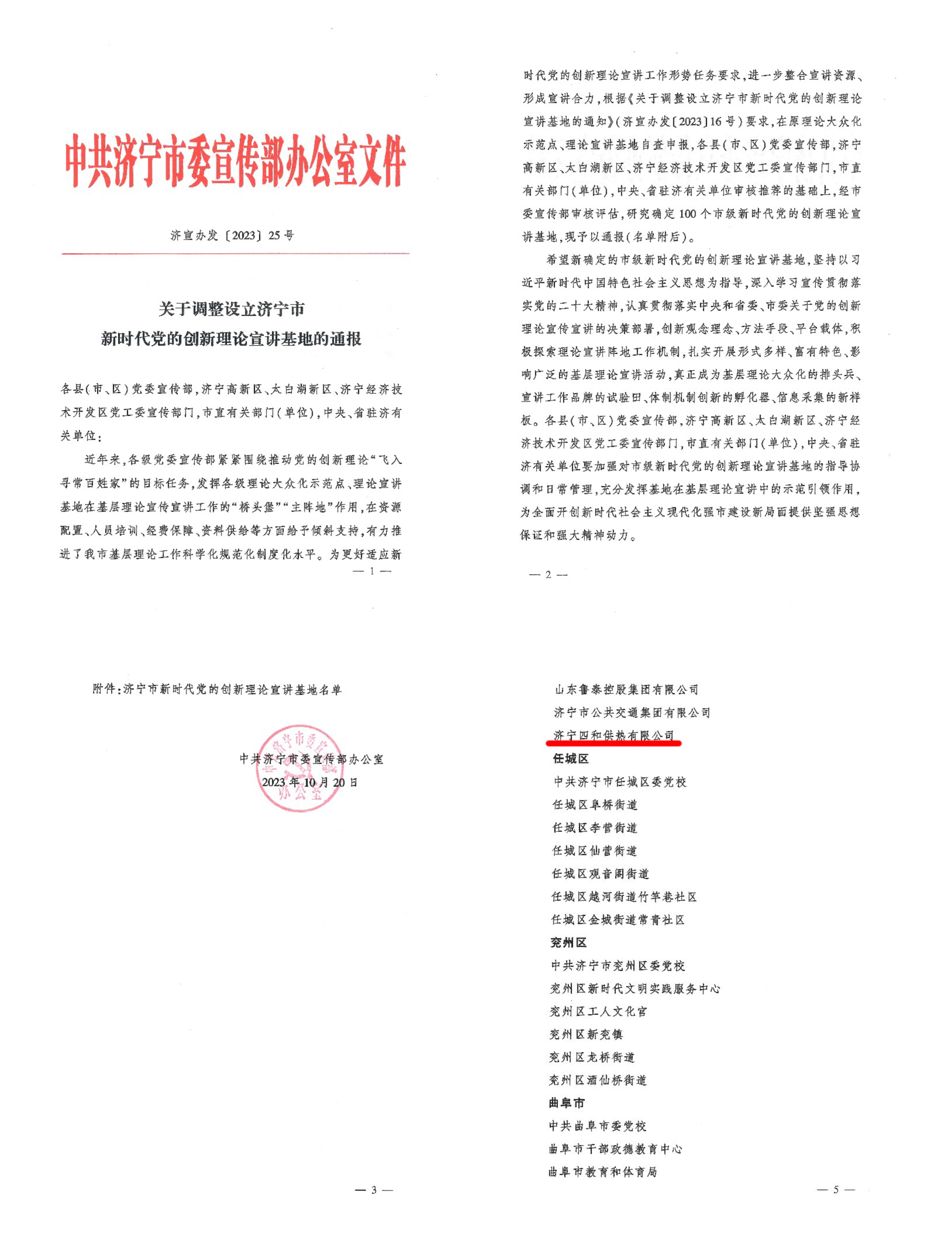 濟(jì)寧四和供熱有限公司獲評 “濟(jì)寧市新時(shí)代黨的創(chuàng)新理論宣講基地”
