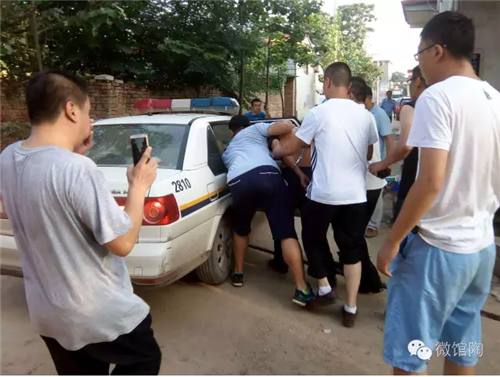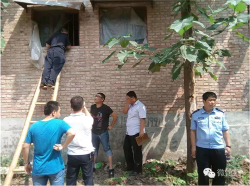 公安局副局長(zhǎng)李杰軍登上盤梯與嫌疑人談話,穩(wěn)定其情緒,做其思想工作,依法穩(wěn)妥處置。