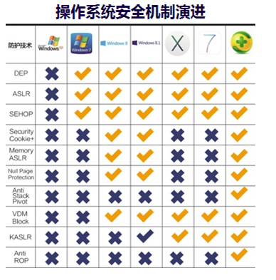 360XP盾甲的這些安全特性加固了XP系統(tǒng)以及Office、IE瀏覽器的安全性弱點(diǎn)。同時(shí)可以看到,anti stack pivot和anti-rop這樣的安全特性,在最新的Win8.1和蘋(píng)果操作系統(tǒng)也不具備。再加上沙箱隔離防護(hù)措施,即使是遍布漏洞的XP系統(tǒng),穿上360XP盾甲后,黑客也難以攻破。
