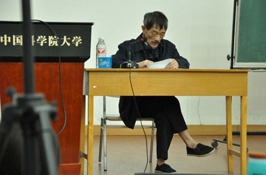 [國(guó)內(nèi)新聞]4月21日,人人網(wǎng)流傳一張照片,一位其貌不揚(yáng)的老人坐在中國(guó)科學(xué)院大學(xué)的講臺(tái)前,低頭念著發(fā)言稿。這位蓄著胡子、一身黑衣、黑布鞋、沒(méi)穿襪子的老人不是來(lái)做脫貧報(bào)告的,而是一名中科院院士,叫李小文。據(jù)《經(jīng)濟(jì)觀察報(bào)》2009年報(bào)道,當(dāng)時(shí)61周歲的他每天能喝一斤二鍋頭。